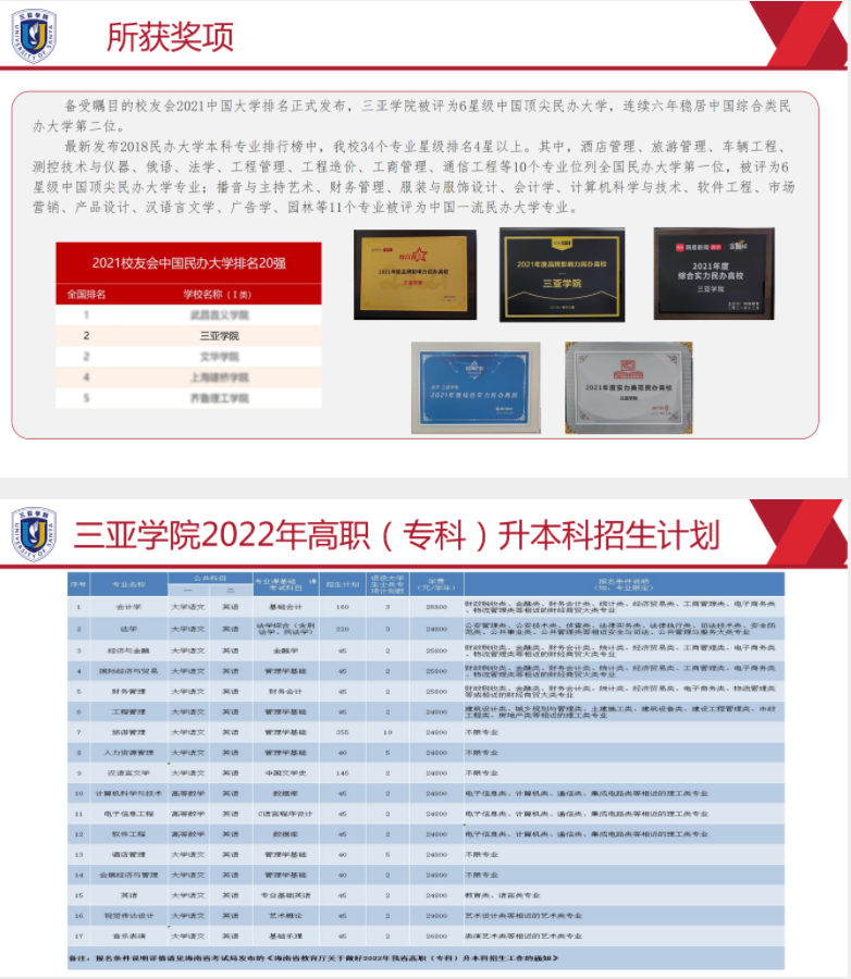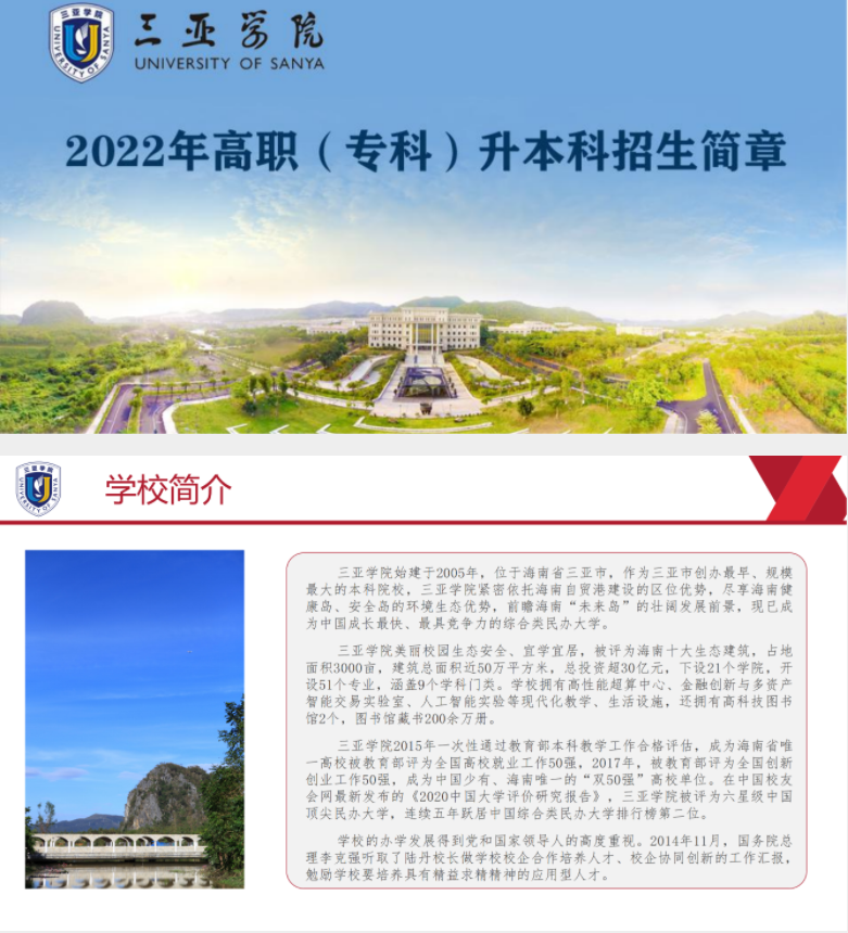 更多详情点击查看:三亚学院2022年高职(专科)升本科招生简章